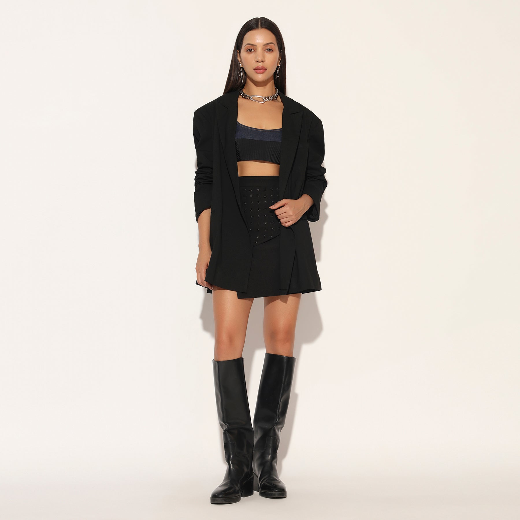 CHIC AND VERSATILE SKIRT WITH HAND DONE METAL EYELET DETAILING