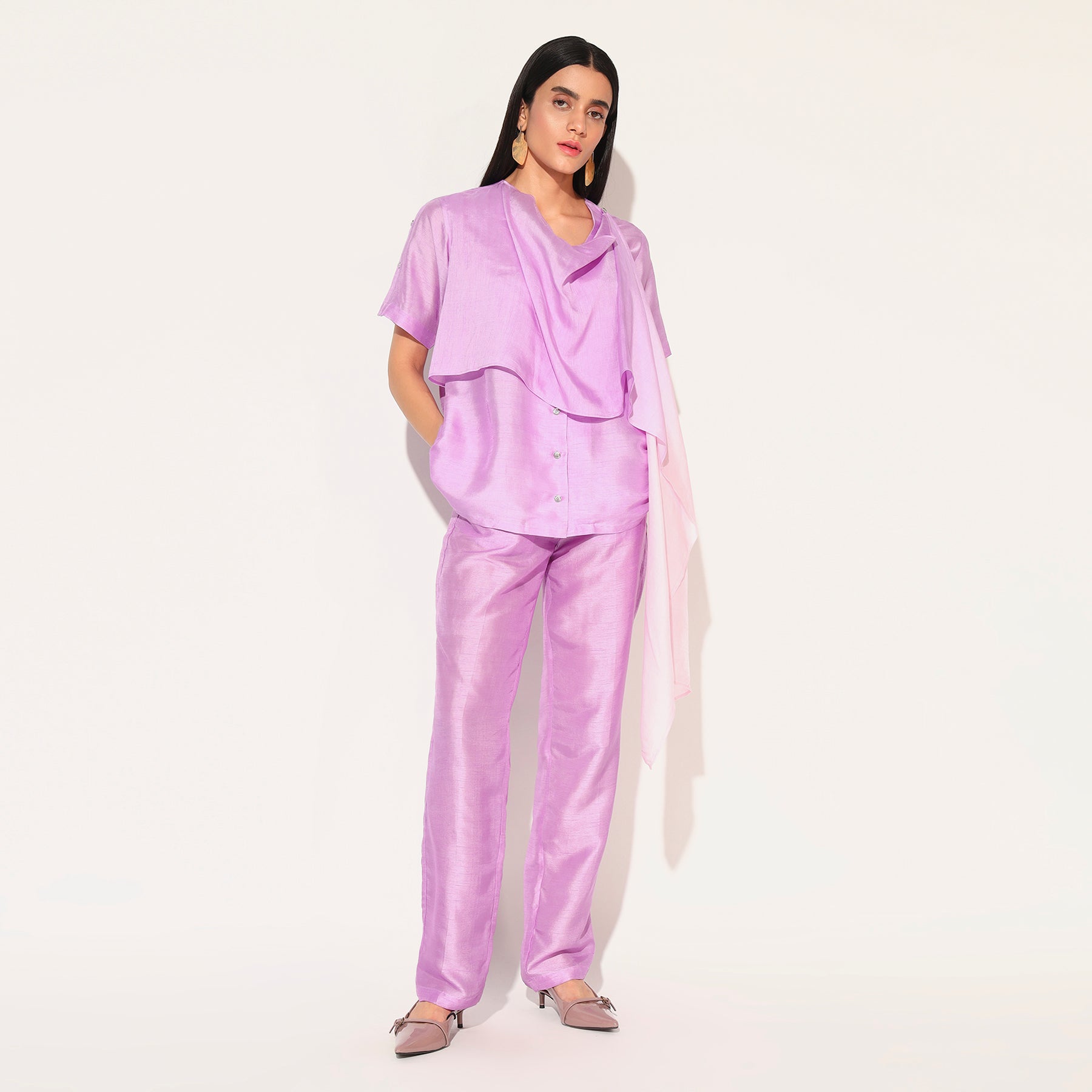 STRONG COLOUR PLAY APPEARS ON A CHIC COORD SET, WITH A UNIQUE, HAND DONE OMBRE